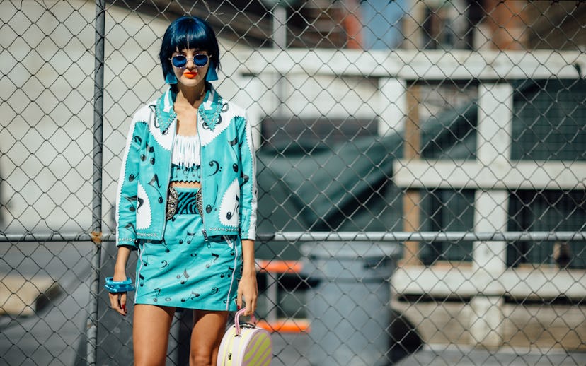 Well, New York Fashion Week is officially over. The fashion people are all jetting off to London while the rest of us hang up our heels and resume life as everyday human beings with penchants for all-black wardrobes. (Hey, this is New York City after all.) But, before we do all that, let's take a moment to admire the genuinely inspiring style that took to the streets this season. Mother Nature presented us with heat waves, wind, and possible storms, but, like Fanny Brice, nothing was going to rain on NYFW's very chic parade. "Hey, Mister Arnstein! Here I am!"