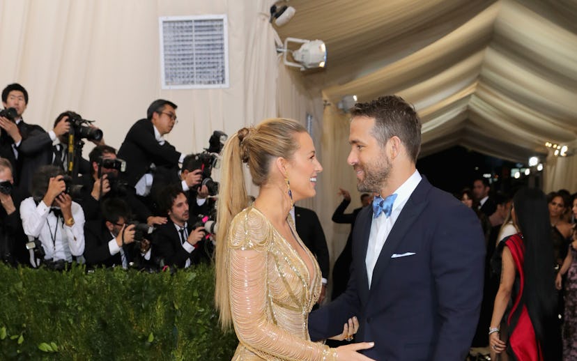 Ryan Reynolds made sure to match his blue bow tie to the colorful embellishments on Blake Lively's Atelier Versace gown.