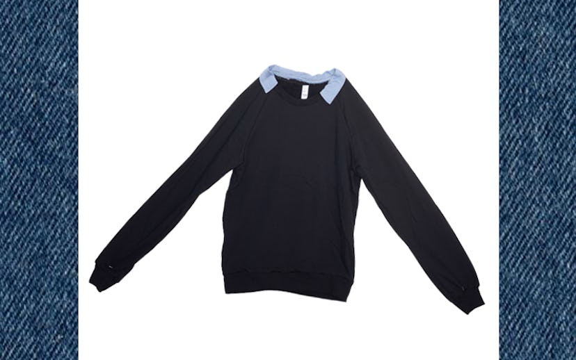 Step 2: Turn sweatshirt inside out and pin the denim collar along the crew neck. (Turn shirt inside out to make sure that the desired amount of collar is showing).