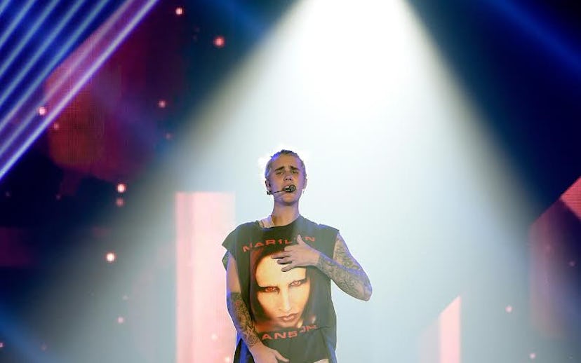 So it’s easy for us to condemn Bieber’s embrace of an aesthetic he’s very far removed from. It’s easy for us to call him a poser, or to roll our eyes, or regale everyone willing to listen with tales of when our friends wore Manson shirts to middle school and got sent home because it was 1998. And it’s easier still because Bieber dresses so boldly. He’s the equivalent of our barely teen selves when we bought our first pair of Etnies and acted like this had always been our look. Only, instead of crumbling to insecurity, he’s wearing his pieces onstage in front of tens of thousands. Which means—contrary to what his occasional outbursts dictate—he doesn’t really care what we think about his clothes. Mainly because that when it comes to his wardrobe, Justin Bieber is the coolest eighth grader around.