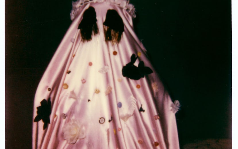 I reimagined my plastic jewels as shooting stars, comets, and planets and decided to create an abstract celestial masterpiece on the body of this ghost. Basically, I just hot-glued the jewels and some strips of fringe all over the place. Follow your alien heart.