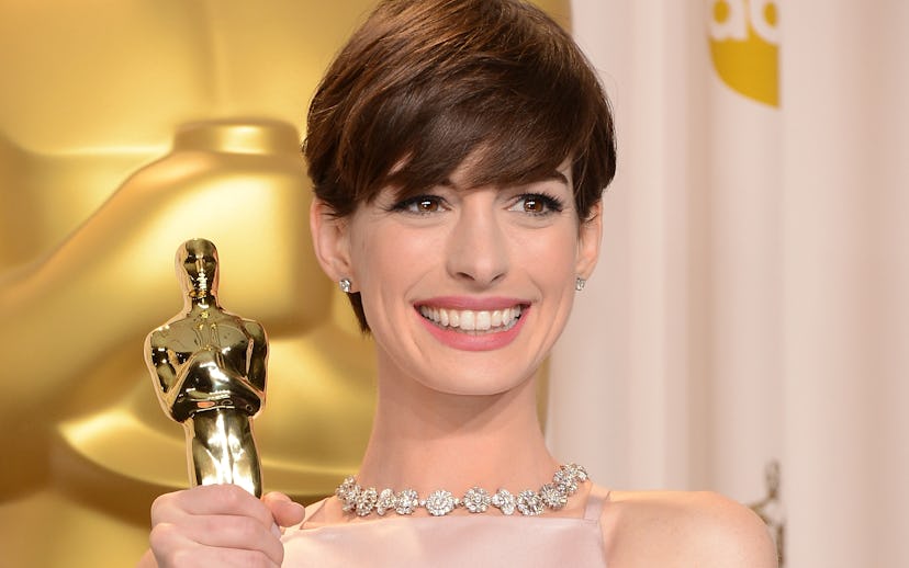 Naturally, Schumer's reaction is to shut him down by telling him that he's acting like Anne Hathaway on Oscar night, referring to the way she clung onto her shiny, gold statue in every single picture. Hathaway saw the film yesterday, and while it's not clear if she was expecting to be made fun of, the actress took it in stride and posted an Instagram of her ticket stub with the caption, "Dear @AmySchumer, Don’t pretend like when you win your Oscar—which you could for your brilliant and refreshing writing and/or acting in @TrainwreckMovie—you won’t tote it around to every Oscar party you go to. Way to slay, Annie."