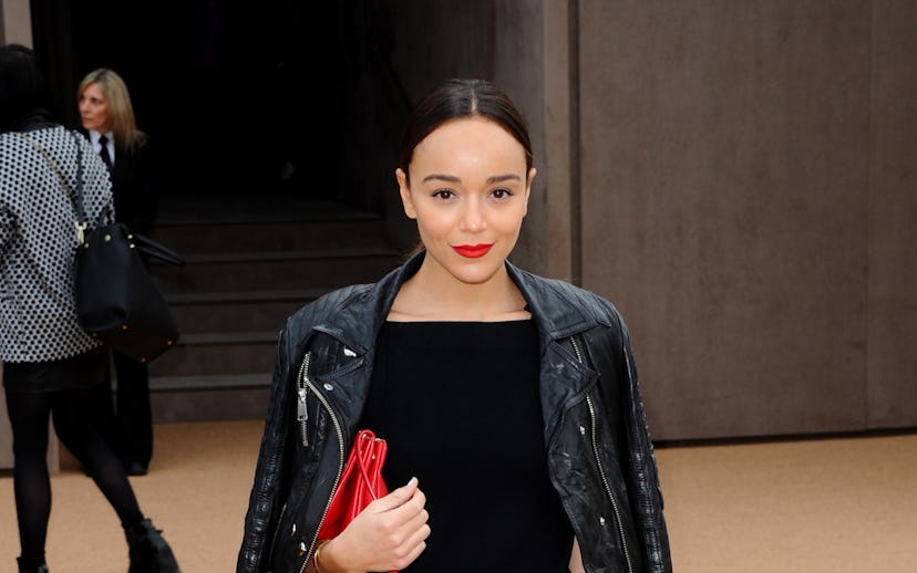 Just when you thought the LBD couldn't get any cooler, Ashley Madekwe accessorizes hers to a T at the Burberry fall '14 fashion show in London. The actress paired her pencil-silhouette dress with a Burberry leather jacket, gold-trim sandals, and a shocking red purse (that matches her lipstick!). Her outfit is pretty much how we want to look at every date, disco, or dinner party from now until forever, so we're recreating it with the items below.