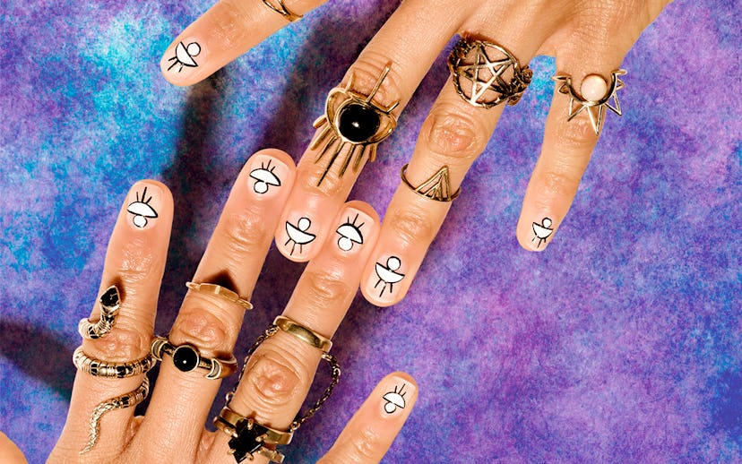 Pentagrams, moons, and evil eyes galore. Channel your spellbinding style by piling on these symbolic bands.