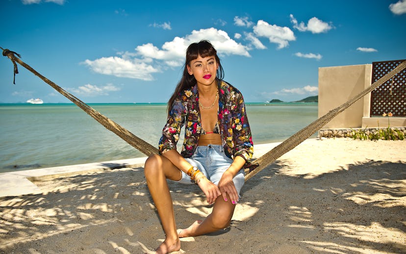 Set in Thailand, two models hang out by the pool and by the beach in La Mer's signature bright watches, including wrap-around and clear perspex styles--the perfect solution for that whole "My watch doesn't match with my outfit" problem. Aside from giving you incentive to totally makeover your watch collection, you'll also want to copy the models' houndstooth and glitter manicures, because matching your nails to your watch is the new matching your purse to your shoes.
