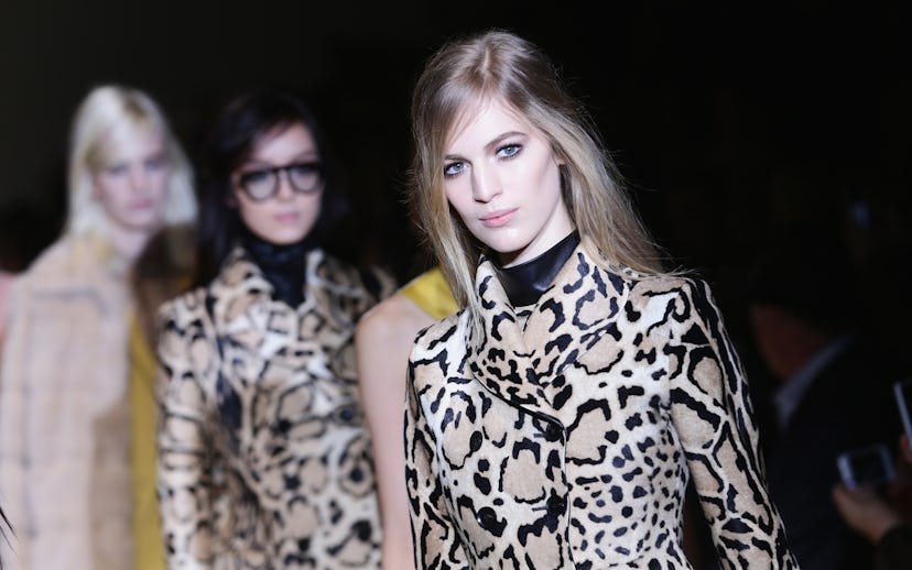 The Gucci show was a tightly edited homage to the Chelsea look of London in the '60s complete with chubby furs, slim suits, and plastic framed aviator sunglasses--all in pastel hues. If anything could make fall and winter seem exciting, it's this collection. -- STEFF YOTKA, ASSOCIATE WEB EDITOR