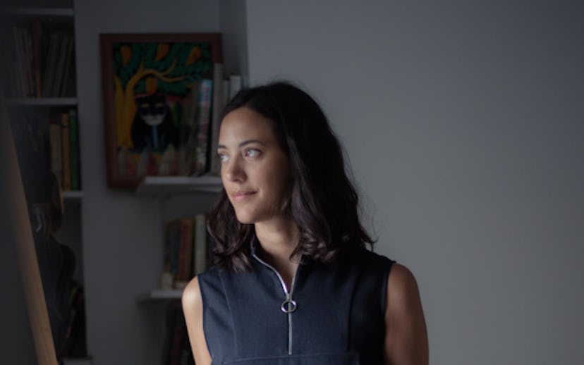 Those familiar with Yara Flinn’s fashion brand Nomia won’t be surprised that her one-bedroom apartment in Williamsburg, Brooklyn, is as minimal-chic as the collections for which she’s known. “I make dresses for women who don’t like dresses,” says the longtime New York City dweller, sitting on a linear gray sofa in a sporty sleeveless anorak-style midi frock of her own design.