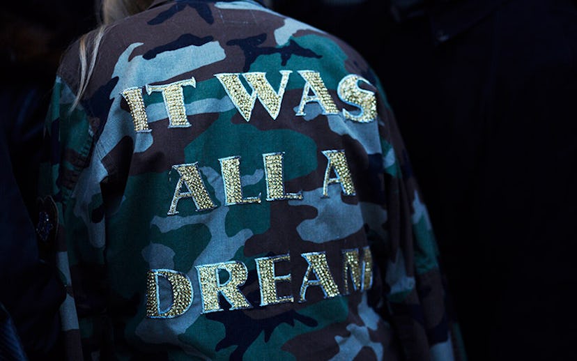 I never dreamed I would attend fashion week. I mean, I did, but I, like, never believed it would happen. Somehow, though, I scammed my way into the world. Sitting front row at the privilege of my previous editors has been transformative, but I love the spectacle of fashion week's nightlife. It's both obscenely pretentious and oddly humbling—much like New York City's nightlife is anyway. You feel small and yet so big. It's nuts; sharing a room with people like the Jenners and their squad is surreal. Last NYFW, a few of my friends found ourselves at a Kylie Jenner party at Up&Down. Leonardo DiCaprio happened to be there. My good friend loves him and wanted to somehow sneak a picture without him looking. (As if he could see with that newsboy cap tipped way low.) Her phone was dying so I handed her mine. Turns out ol' Leo is keenly aware of his surroundings—even when surrounded by models—and put his hand to block my camera's lens on his way to the bar. The end result was a weirdly satisfying photo burst of Leonardo DiCaprio's brim-covered face getting closer to the camera and hand eventually blocking the whole thing. It didn't do much for her, but my photo stream on the other hand... it's basically Academy gold. If we want to talk about actual fashion moments, however, getting photographed on the street in an outfit you weren't too hyped about but others found to be special is pretty rewarding. Consider that a lesson in truly trusting your gut sartorial instincts.