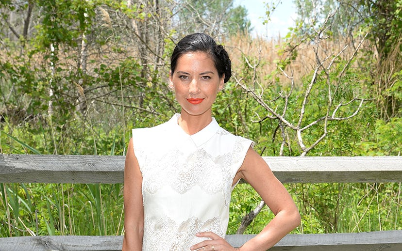 With the first of June finally coming around, Newsroom star Olivia Munn hit the Seventh Annual Veuve Clicquot Polo Classic in Liberty State Park reminding us of three of our favorite summer things: shorter hemlines, wedge sandals, and those easy pullover dresses that always look good. While her Lover dress was shorter than most of the other guests, Munn spruced it up with a striking orange-gold lip and blocky wooden clutch. Her loud accessories were complimented by her beige wedges, white collar and diamond earrings, each adding some old-fashioned elegance to her modern frock.