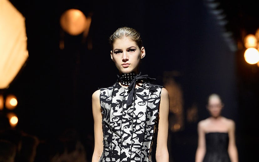 Hedi Slimane's newest crop of grungy-goth goodness featured tons of achromatic separates, luxurious black minidresses, and unexpected pops of glitter in '60s shifts. Equal parts bewitching and flashy, let's just say Wednesday Addams would be very jealous. -- LD