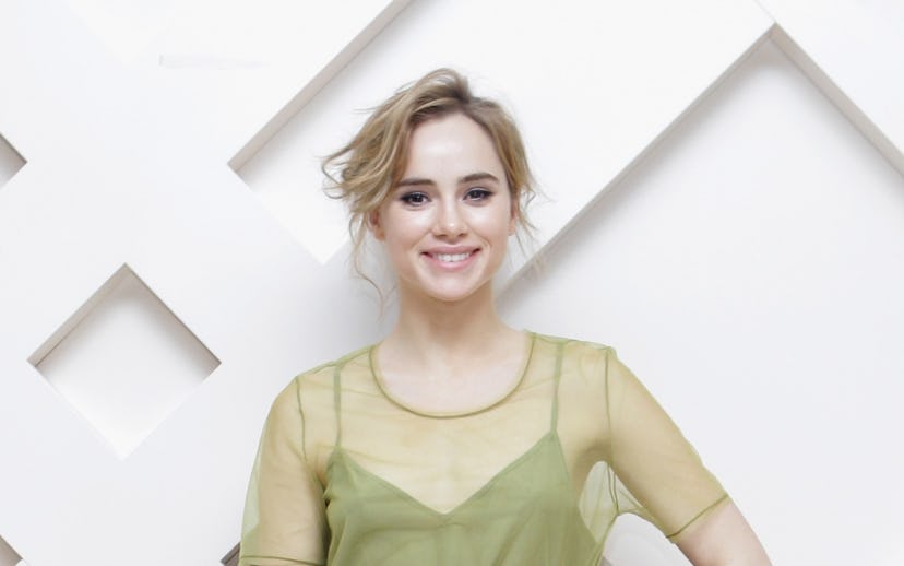 At the Seoul launch of Burberry Beauty Box, Suki Waterhouse (who's an ambassador for the brand) wore a Burberry dress that's more quirky than the retro-inspired picks we're used to seeing her in. The British actress/model is known for an off-duty style that’s part downtown, part vintage. But in this seafoam, layered piece, Waterhouse resembles an off-duty ballerina who just came from rehearsal. The dress has an organza t-shirt layer which is tucked into a tutu-like, tiered green-ombre skirt. The overall effect is ethereal, whimsical, and totally chic.