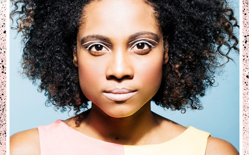 Feeling creative? Try creating crazy-cool shapes with your liner that'll have everyone doing double takes. Ashleigh took a shimmering green cream liner and drew an incomplete triangle in the inner corner of the eyes. She then created a negative-space cat eye like in the previous look, but instead of blending it, she created a hard stop in the center, so the cat-eye flick is essentially a triangle. Fill it in completely.