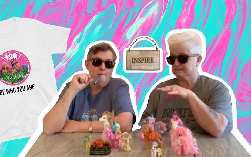 420oldfatlesbians is the Instagram account of Sue and Lee, a couple of retirees living in Maine, who are creating some of the most wholesome weed-friendly content ever to grace the internet. A quick scroll through their feed and you'll find an assortment of delightfully funny videos geared toward stoners, perfected with dollar store decor and whichever innovative bong or pipe Sue has concocted that day (this means it could be anything from a squeaky unicorn toy to Lee's iced coffee). Watching their daily videos has quickly become my favorite form of self-care, whether I have a joint in hand or not.