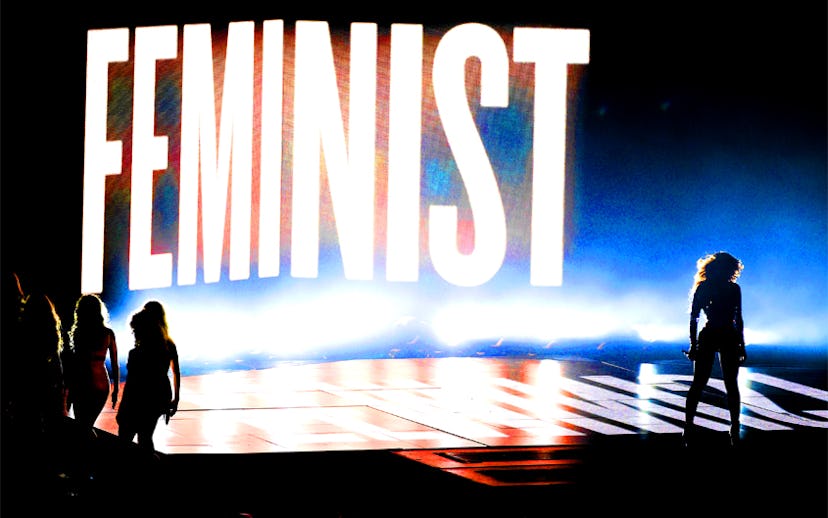 After getting some flack for calling her fifth concert tour “The Mrs. Carter Show World Tour,” and ambiguously labeling herself a “modern day feminist,” Yoncé made her stance on feminism perfectly clear in her now-iconic VMAS performance, standing in front of a giant “FEMINIST” sign as Chimamanda Ngozi Adichie’s voice echos in the background: “Feminist: a person who believes in the social, political and economic equality of the sexes.”