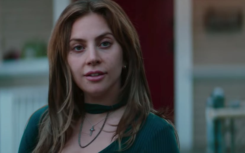 The first time we see Lady Gaga’s Ally in A Star Is Born, she’s storming out of a bathroom stall after breaking up with her boyfriend. Her hair (brown, Gaga's natural color) is up in a bun. Stray strands frame her face. Save for maybe some lip balm, she’s barefaced, and beautiful. This is the real Ally, who punches cops and talks back to her boss.