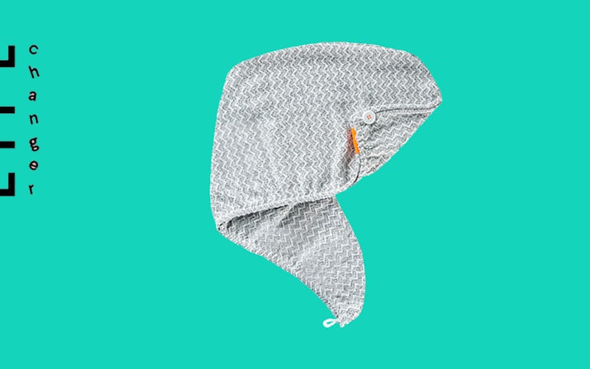 The premise of the turban is simple: Instead of using a regular towel to dry your hair, wrap your hair in the turban, which is made specifically for this task (unlike your bath towel), and twist it up before securing with a button conveniently sewn onto the fabric. What the turban does is eliminate the friction when drying, which allows your hair's cuticle layer to stay intact and lock in moisture. So while the AQUITEX material, an innovative water-wicking fabric made from ultra-fine fibers, absorbs more water, more quickly than a bath towel, it also helps maintain healthier hair by minimizing friction and, as such, reducing hair breakage and frizz.