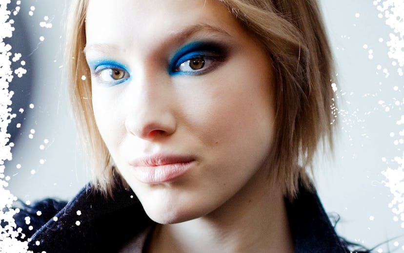 Screw a natural-looking bold brow: Go big or go home, right? Rather than being delicate with a brow gel, use grease paint and really have fun with broad strokes. Also, using an actual paintbrush (like, from a $.99 store) will help you get those broad, messy lines. The idea is that is should look like eyebrows from far away but have that kind of Blade Runner feel, which is coincidentally where head Maybelline artist Yadim Carranza got his inspiration.