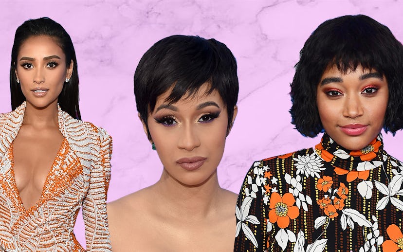 The hair looks were a little less uniform. Cardi B traded in her usual long locks for a short pixie, while Tiffany Haddish opted for a black-and-white braided updo. Shay Mitchell made us want to try the wet, slicked hair look and Bebe Rexha went for dramatic side-swept bangs.