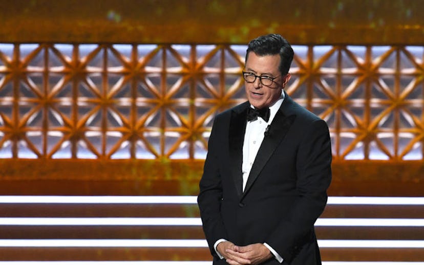 During the monologue portion, Colbert made the obligatory, “we know Trump is watching and will probably tweet about this” joke when he said, “There were over 450 original scripted shows made this year. Of course, there is no way anyone could possibly watch that much TV—other than the president, who seems to have a lot of time for that sort of thing. Hello, sir, thank you for joining us. Looking forward to the tweet.”