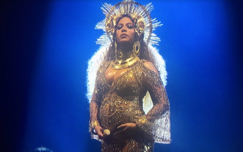 Beyoncé took the stage at tonight's 59th Annual Grammy Awards with absolutely nothing to prove. The very definition of an artist, Beyoncé spent 2016 burnishing her icon status with the release of the epically powerful Lemonade, an ode to black womanhood and a moving testament to strength, resilience, and forgiveness. And then to start of 2017, the queen announced that she was pregnant with twins, making it possible for all of us to believe that perhaps there was some reason left to be optimistic despite the chaotic state of the world.