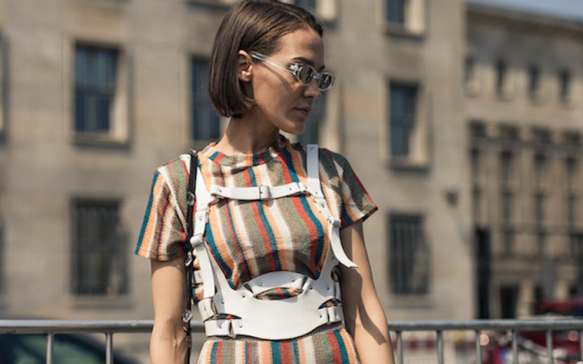 Berliner style had no boundaries, and we have the proof. Towels? Throw ‘em on your head to make a head wrap accessory. Harnesses? Take one from the bedroom and put it, well, anywhere. It doesn't stop there. From voluptuous tulle to belt buckles in every color of the rainbow, accessories and interesting fabrics were the stars of this street style show. The Germans showed us how to elevate classic prints and textures such as florals and denim, as well as the chicest ways to update old trends, such as bandage skirts (hint: wear them in leather and add some buckles).