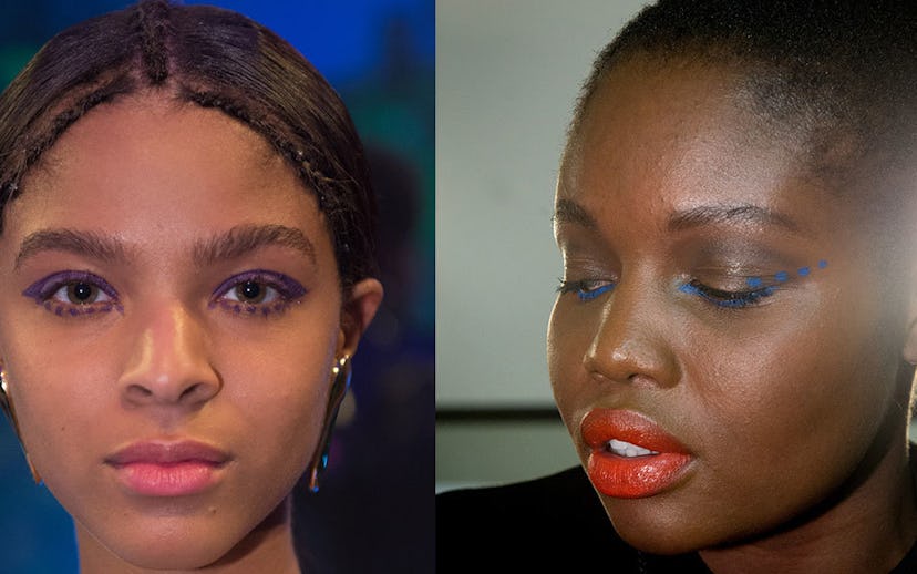 Behind the scenes, makeup artist Nick Barose—who often does the makeup for lead actress Lupita Nyong’o—painted on the colorful designs by lining the eyes with Lancôme products, who was a sponsor for the show. The beauty looks from the actual movie are meant to exude African pride and pay homage to Afrofuturism, so it only made sense that the looks for the presentation did the same. Barose says that he was “inspired by African Face Art, but with a futuristic edge.” He drew the dots in a way that would make it easy to create at home. “We kept it natural and fresh, so it didn’t look costume-y,” he shares, adding that it’s a great makeup moment to recreate for a fun night out (or, say, to see the film this weekend).