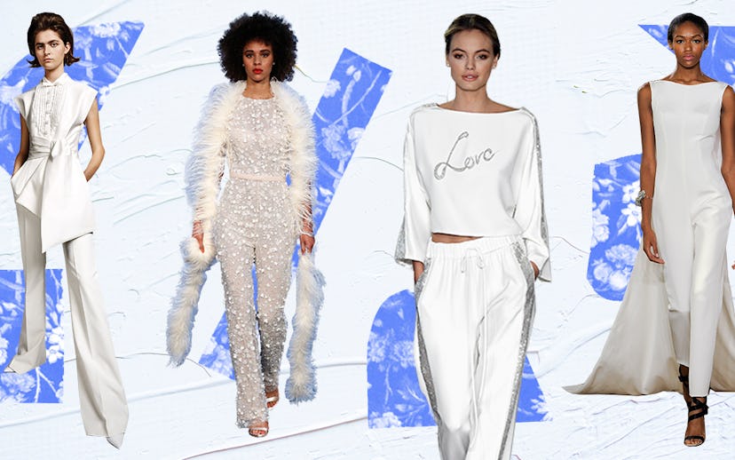 The proof was in the number of non-dress looks that appeared on the Fall 2019 runways—and not just feminine jumpsuits that have been popular in seasons past. In fact, more and more designers showed chic pantsuits, structured separates, and tuxedo-like one-pieces as part of their collections, a move as bold in the oftentimes conventional bridal world as are the customers for whom they're designing.
