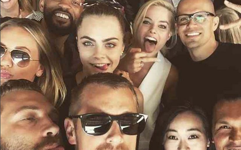 Delevingne also took the opportunity to give an unknown, black toe polish-wearing individual their own squad tattoo, with a Harley Quinn photobomb thrown in for good measure. Is it just us, or does this look like the raddest movie set of all time?