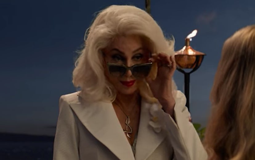 And even though Sophie tells her that she wasn't invited, when has that ever stopped Cher? As her character drolly says, "That's the best kind of party," and honestly, we kind of have to agree. After all, if anyone's going to crash a function, it's Cher arriving in a helicopter.