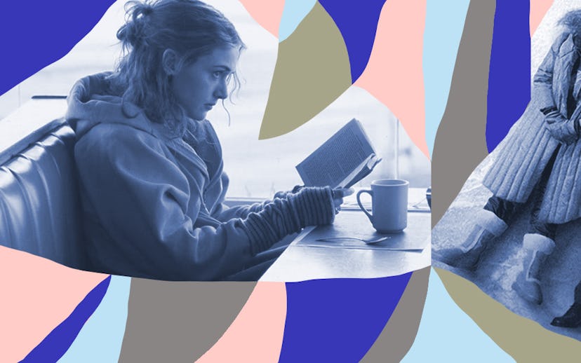 When Clementine and Joel go for a hike in the woods during the fall, she wears a pair of camouflage pants and a slogan tee that’s more than a little ironic considering the film’s twists and turns. It reads “love is…” with two cartoon characters on a stage, one of them playing guitar. The tee goes with Clementine’s overall casual, slightly grungy ‘90s aesthetic—again, more relevant today than ever before (and seen all over the runways.) But what’s more, is that fact that throughout the movie, Clementine (whether intentional or not) uses books as an accessory. She works at Barnes & Noble, and there are two times when Clementine is seen holding a book prominently. Once when Joel goes to visit her at work, and another time when she reads a book at a restaurant in Montauk. Considering Gucci used a decorative book as an invite for its most recent Milan Fashion Week show, Loewe gave fashion show guests copies of classic novels during its Fall 2018 show, and Paris-based up-and-coming brand Koché sent models down its runway with paperback novels inside Strand bookstore for its pre-fall 2018 show, it's clear that we're not the only ones who see Clementine as the perfect style icon for right now.