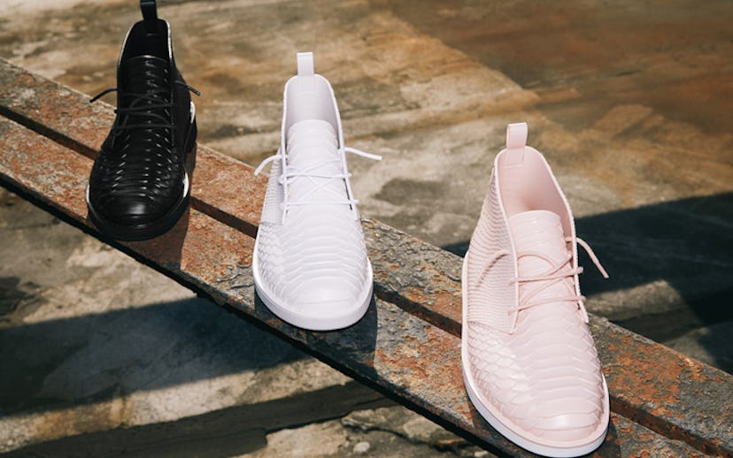 Our favorite jelly shoes from the '90s have been recast in a grown-up way thanks to cool kid label Baja East and plastic shoe extraordinaire brand Melissa. Not only are there two versions of sandals reminiscent of our childhood, but there are also sophisticated heeled mules, boots, and even a bucket bag. What's more, all the styles became available immediately following the Baja East show last week at the Galeria Melissa in NYC, where the futuristic runway was staged.