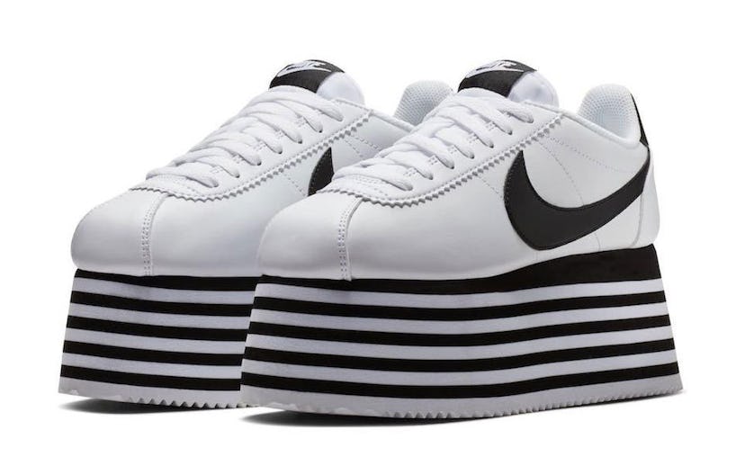 Last March, Comme des Garçons sent a pair of platform Nike Cortez sneakers down the runway during Paris Fashion Week. Now, it seems, the shoe is on its way to becoming available to the public, which leads us to the ever-pressing question: How far are we willing to go for fashun? A.k.a., would we or wouldn’t we wear them?