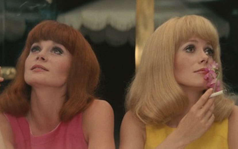Jacques Demy's 1967 musical, The Young Girls of Rochefort, wraps a buoyant story of romantic entanglements (with a random aside about a murderer thrown in at one point) in an eye-popping array of pastel shades. Featuring the effervescent Catherine Deneuve and her sister, Françoise Dorléac, playing twins Delphine and Solange, the film may not have the emotional wallop of Demy's earlier Deneuve-starring The Umbrellas of Cherbourg (1964), but it does have a pure '60s sense of pop art fun and fabulous attire.