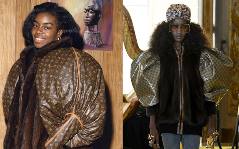 Day, who says he's been "underground" since closing his shop 25 years ago, created pieces for celebrities like Mike Tyson and LL Cool J. The coat that Gucci recently copied was part of a 1989 collaboration between Day and Olympian Diane Dixon. It was immediately recognized by people, including model Hari Nef, because of the signature puffy sleeves.