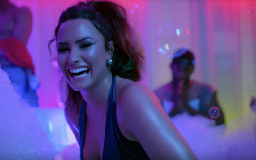 The visual pretty much follows Lovato as she flexes on everyone at the party, singing the lyrics to the track with sassy confidence. And if the vibe of the video feels familiar to you, it's probably because it was directed by the same woman that directed Lovato's video for "Cool For the Summer," Hannah Lux Davis.