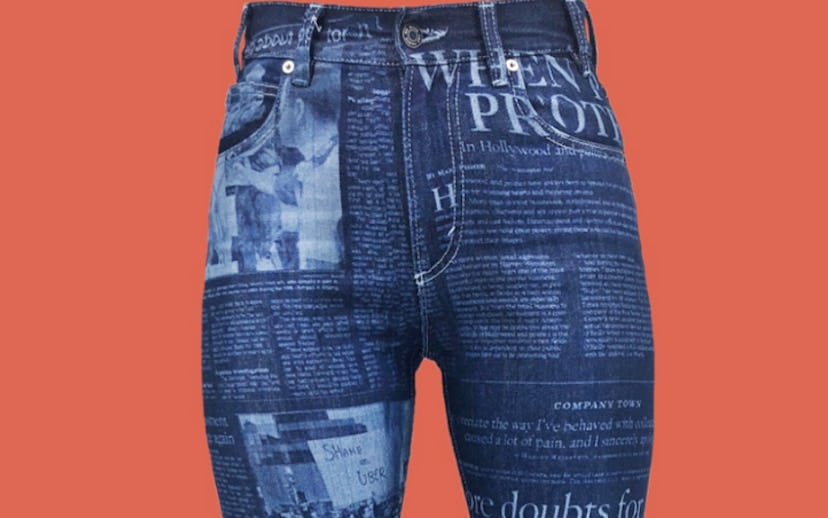 Earlier today, a New York Times article on the release of a #MeToo-themed capsule collection from recycled denim brand Denimcratic was published. However, the line's jeans quickly came under fire for marketing themselves as "woke" jeans, yet only going up to a size 10. Dubbed We Wear the Pants, the line includes a denim jacket ($375) and pair of jeans ($250) laser-printed with "30 news reports from The Los Angeles Times, The Chicago Tribune, The Washington Post, The New York Times, and The Boston Globe, all detailing stories about sexual harassment in the workplace."