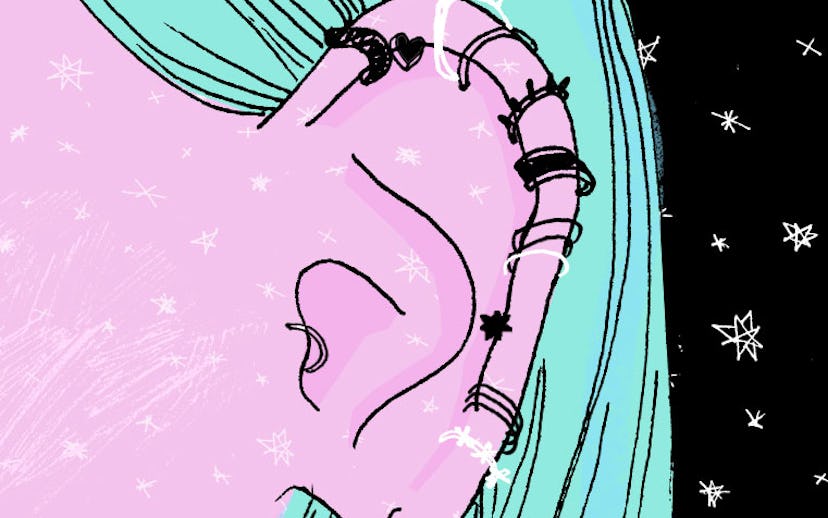 While this new wave of body parties is nothing new—humans have been piercing themselves for at least the past 5,000 or so years—it has certainly taken on a new meaning in this post-Y2K culture. No longer is a punk-rock aesthetic a pre-requisite for driving a needle through one's entire ear 20 or so times, as women of all different styles have decided to partake: You can easily find a row of delicate gold hoops on the lobe of a British socialite, a mixed-metal assortment on a fashion industry insider, and, of course, a river of cheap Claire's studs on your local teenage mall rat.