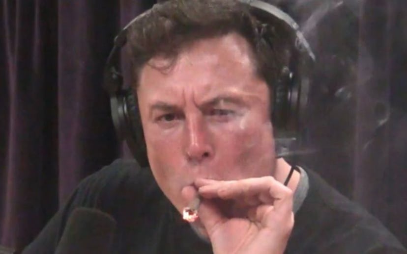 According to CNBC, Musk surprised viewers by taking a hit of comedian Joe Rogan's joint during a live-streamed interview (in California, where it's legal). Not only that, but Musk also confessed that he's tried a joint "once." No word on whether or not that one time was when he said he wanted to take Tesla private at, erm, $420 per share.