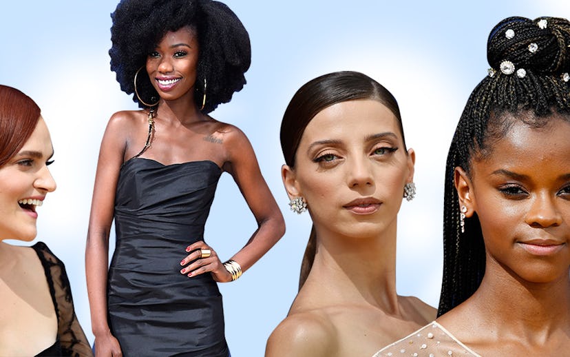 Letitia Wright adorned her braided bun with dazzling crystal gems.