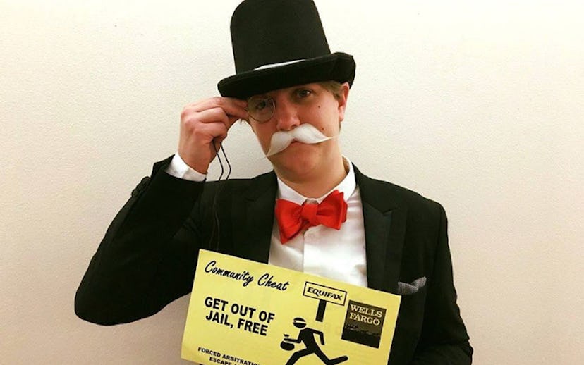 Today's hero is activist Amanda Werner, who showed up to the Senate's Equifax hearing dressed as the Monopoly man. During the proceedings, the female Uncle Pennybags wore a black top hat, a red bow tie, and a gold monocle. She stroked her white mustache as the credit report agency's former CEO, Richard Smith, testified before the Senate Finance Committee in view of Equifax's massive data breach, which affected more than 140 million consumers.