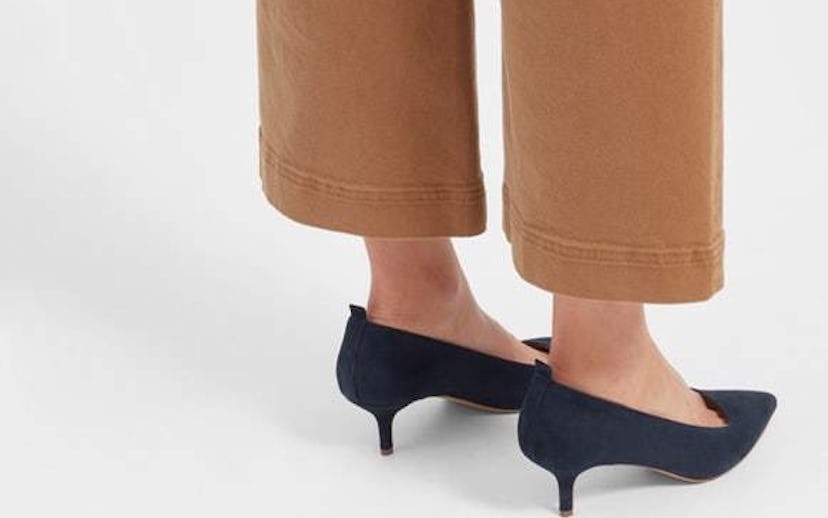 Dubbed The Editor Heel, Everlane's new launch features four pairs of suede kitten heels, each rounding out at two inches high. The heels come in a variety of neutral colors, including black, navy, taupe, and dark green, making it the perfect transitional shoe to wear from work to the bar. Each pair is priced at $155.