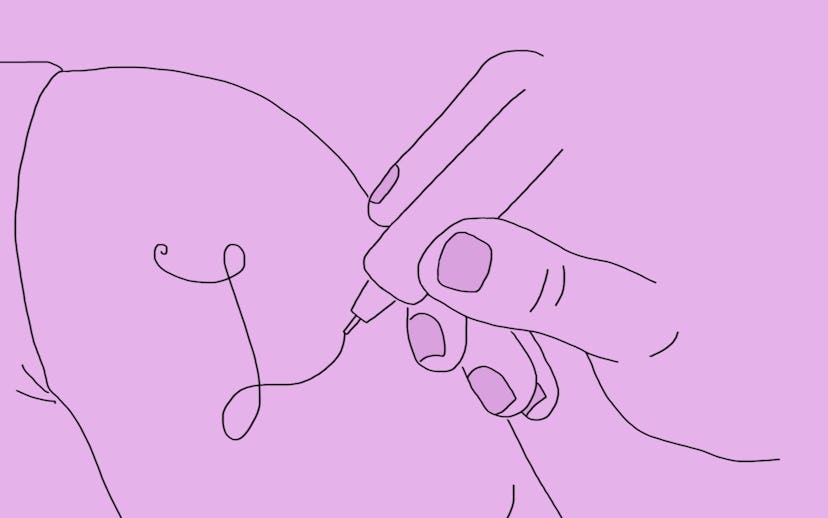 A tattoo lays in the subdermal layer of skin, so it’s not deep enough for extreme pain; though that can also be relative to the person and placement. Jonboy and Bang Bang describe the feeling most like a little pinch. If the ink starts to bleed, causing a blue-tinted undertone, the artist went too deep below the “sweet spot,” which can be a problem for the integrity of the work. If too shallow, the ink will fall out. You don't need to worry about either of these things if you picked the right artist, though—he or she'll know what they're doing.