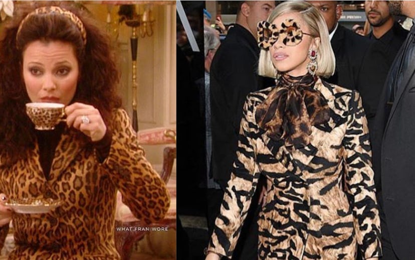 The rapper paid homage to the actress in an Instagram post recently, captioning her all-animal print 'fit with a caption, "Fran Drescher in@dolcegabbana," and now that we think of it, the two could probably trade wardrobes and no one would notice.