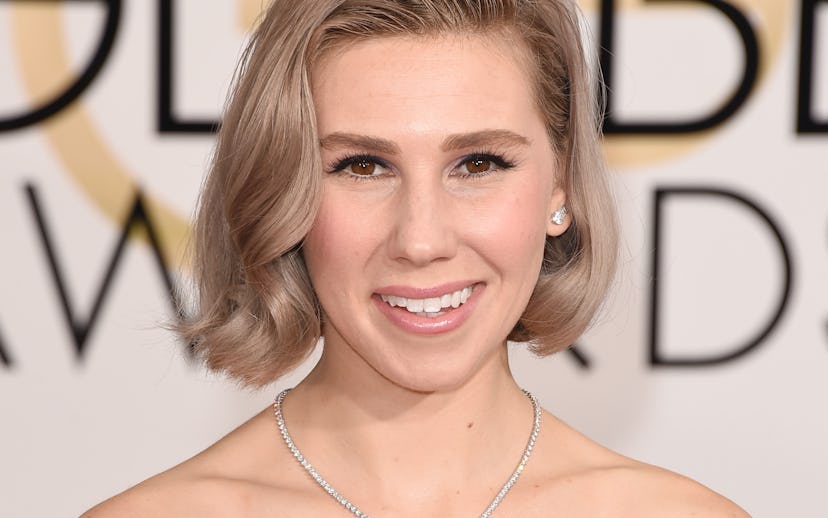 Paired with a pretty, pale-pink lip, rosy cheeks, and minimal eye makeup, Zosia Mamet's silver, elegantly wavy bob is perfection.