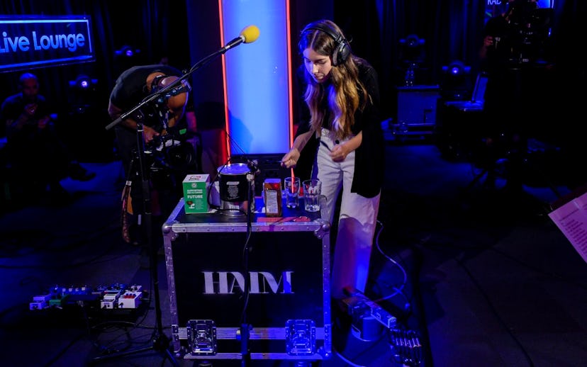 Danielle used household items, including two drinking glasses, a box of tea, two coffee tins, and a mug to perform the percussion parts of the single, while her sisters, Este and Alana, sang. Oh, and her drumsticks? A pair of knives. Talk about true talent.