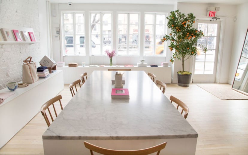 Of course, there is shopping, too. The store is filled with treasures ranging from ceramics to art books to handbags to the Hesperios line of knitwear. (There is a charmingly constructed dressing room that Hruby made a point of showing me.) It has charm in abundance, but also a specifically welcoming atmosphere. It's easy enough to imagine whiling away an afternoon, sipping tea and snacking on bread and cheese, leafing through an issue of The Paris Review, and trying on the kind of perfect knit skirt that skims, and even seems to float over, your body.