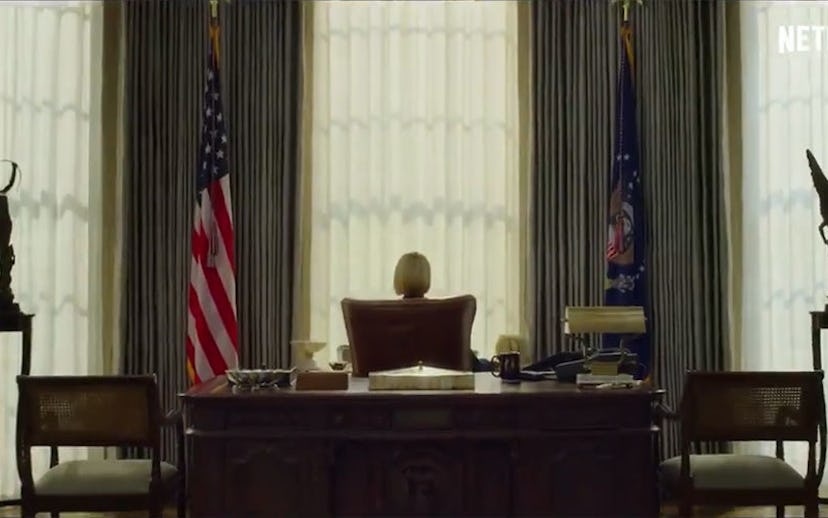 Here, now, welcome House of Cards' President Claire Underwood. "We're just getting started," she says, breaking the fourth wall.