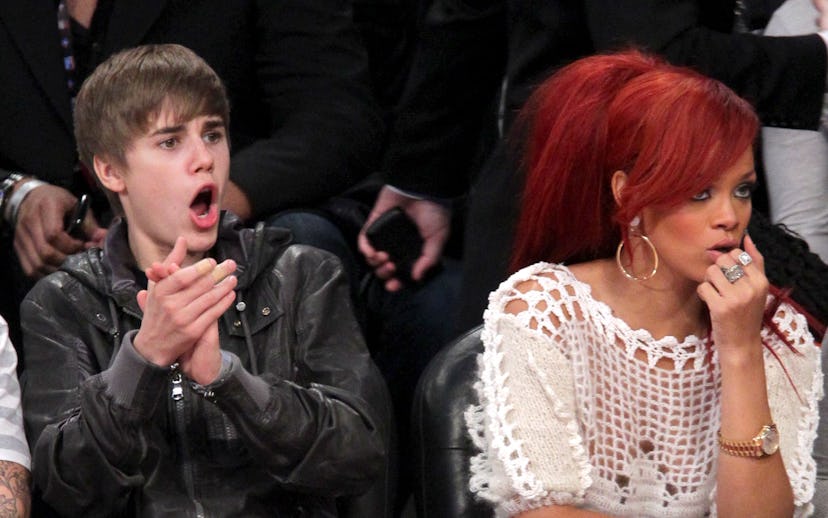 The throwback photo itself is from 2011, and shows Bieber and Rihanna hanging out courtside at a basketball game. (Celebrities just love hanging out at basketball games!) The photo is a simple paparazzi shot of Bieber showing Rihanna his phone, but the "Sorry" singer added the self-deprecating caption: "Can I have your number please" -Justin "Nah" -Rihanna