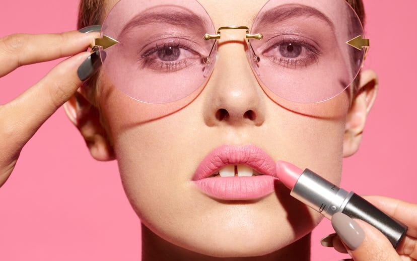 Karen Walker, Love Hangover in Pink, $199.63, available at Karen Walker; M.A.C., Lipstick in ‘Feeling Fizzy,’ $17, available at M.A.C. Cosmetics.