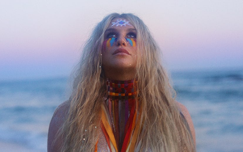 Kesha is present. After a remarkable year of redemption and a number one album, Kesha's exactly where she needs to be. The chart success of Rainbow is simply the icing on a cake of personal triumphs. "I would not have made it through the last few years without my Animals," Kesha tells us. "I didn’t know how people would react, because I wasn’t trying to write hits this time around, but I have been overwhelmed at the response, and it just encourages me to double down on this organic and honest style of making music."